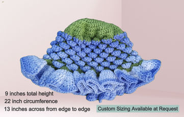 Blueberry Blast is a blueberry inspired bucket hat that is beautifully textured and soft to the touch. Great for wearing on sunny beach days and cool afternoon walks. Crocheted with precision and handcrafted with love.